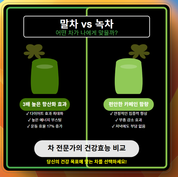 여러분은 어떤 차를 더 선호하시나요? 특별한 활용법이 있다면 댓글로 공유해주세요! 건강한 차 생활로 더 활기찬 일상을 만들어보세요. 🍵